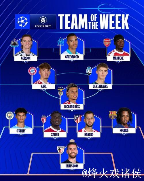 欧冠小组赛战火再燃,本周的多场焦点之战不仅奉献了进球与激情,也催生出一套极具话题性的“本周最佳阵容”。在这套最佳十一人中,切尔西边锋马杜埃凯、巴萨后防中坚孔德以及重新走上聚光灯的格林伍德格外抢眼,他们
